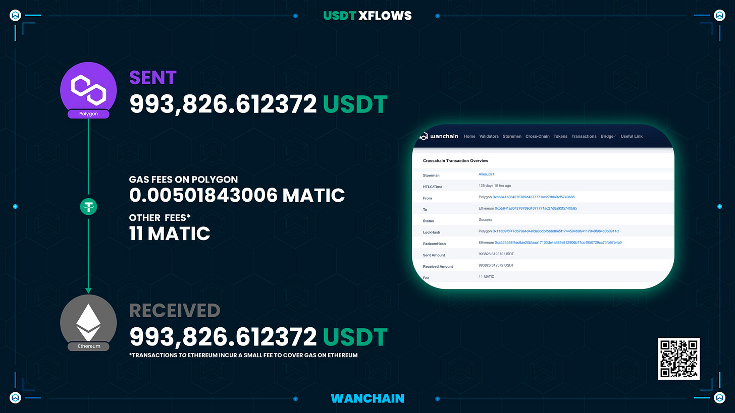 XFlows is a new inventive service enabling native-to-native cross-chain transfers for assets that are minted on multiple blockchains, like Tether’s USDT and Circle’s USDC, by combining the lock-mint-burn-unlock and liquidity pool cross-chain mechanisms. XFlows allow users to move their assets between chains without ending up with a wrapped token. XFlows currently works on Arbitrum, Avalanche C-Chain, BNB Chain, CLV, Ethereum, Moonriver, OKX Network, Polygon, Tron, Wanchain, and the XDC Network.